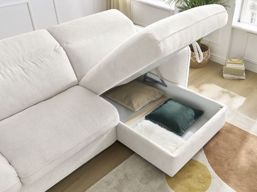 Le coffre spacieux sous la méridienne est parfait pour ranger coussins, plaids ou draps et garder un espace net.