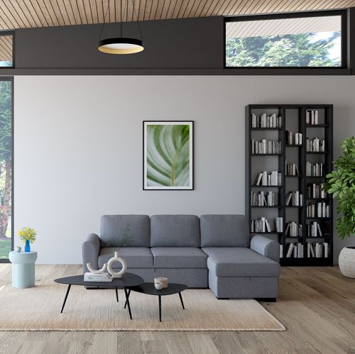 Avec ses lignes épurées et son revêtement en tissu gris résistant, le Canapé convertible Montréal s’intègre à merveille dans les salons modernes ou scandinaves. Son angle réversible permet une flexibilité parfaite, idéale si vous aimez réaménager votre espace. Ajoutez des coussins colorés ou un plaid texturé pour personnaliser davantage votre déco.