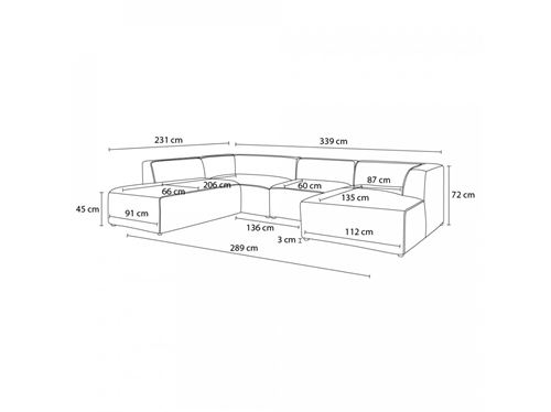 Soyons honnêtes, ce canapé est fait pour les grandes pièces. Avec une longueur de 339 cm et une largeur de 231 cm , il occupe un bel espace. Si vous aimez avoir un coin salon imposant qui attire l'attention dès qu'on entre dans la pièce, vous êtes sur la bonne piste.