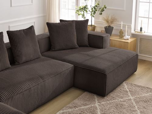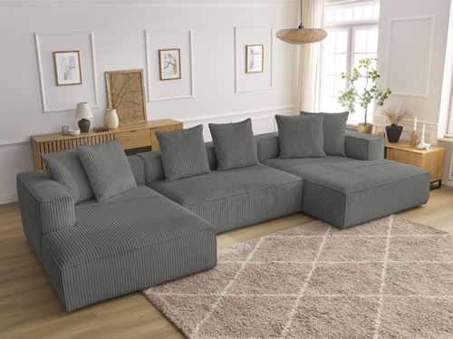Le canapé en U NINA est une pièce maîtresse. Son revêtement en velours côtelé, à la fois doux et texturé, apporte une touche de chaleur et de sophistication à votre salon. Que vous optiez pour un intérieur moderne, scandinave ou même bohème, il sublimera votre décoration avec élégance.