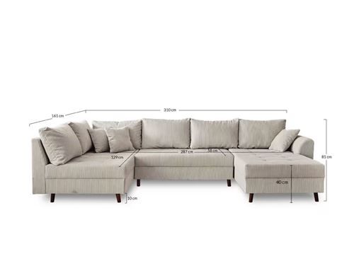 Avec une longueur de 310 cm, ce canapé panoramique est idéal pour les grands salons ou les espaces ouverts. Il transforme votre pièce en un cocon accueillant et spacieux.