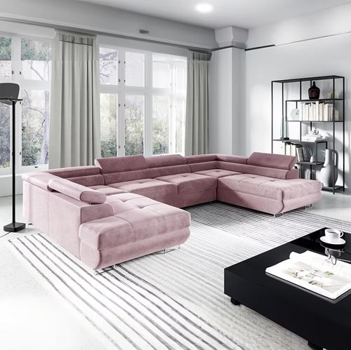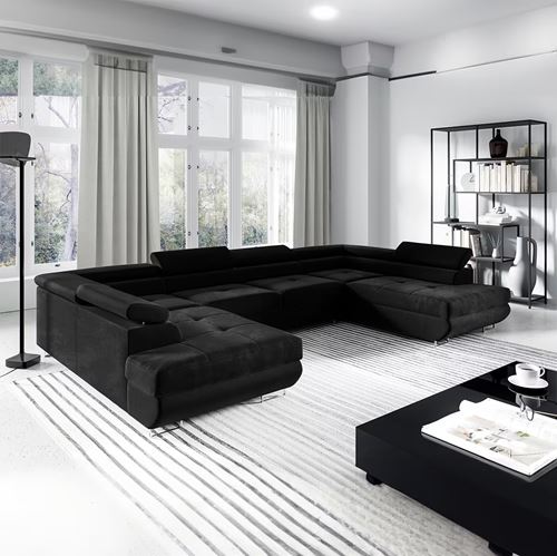 Le Wilson allie le charme du velours noir à une structure robuste et élégante. Ses pieds en métal chromé apportent une touche contemporaine, tandis que sa forme en U s’intègre parfaitement dans les grands salons. Avec ses appuie-têtes réglables en hauteur, il s’adapte à vos moments de détente, qu’il s’agisse de lire un livre ou de regarder un film.